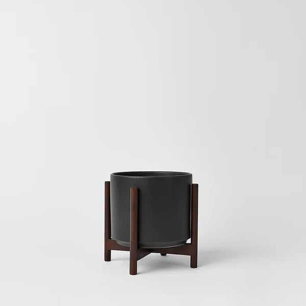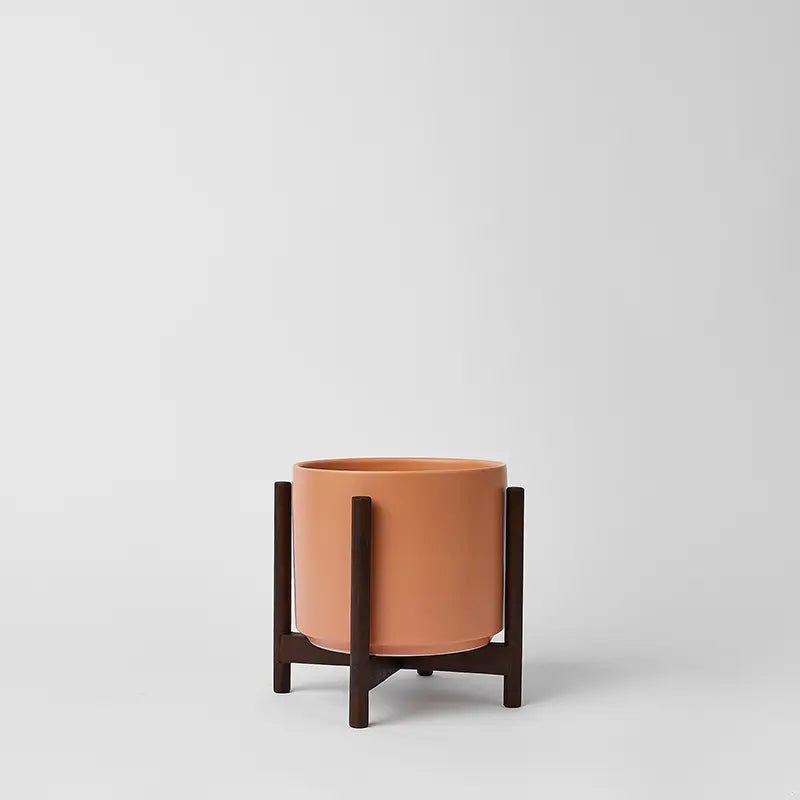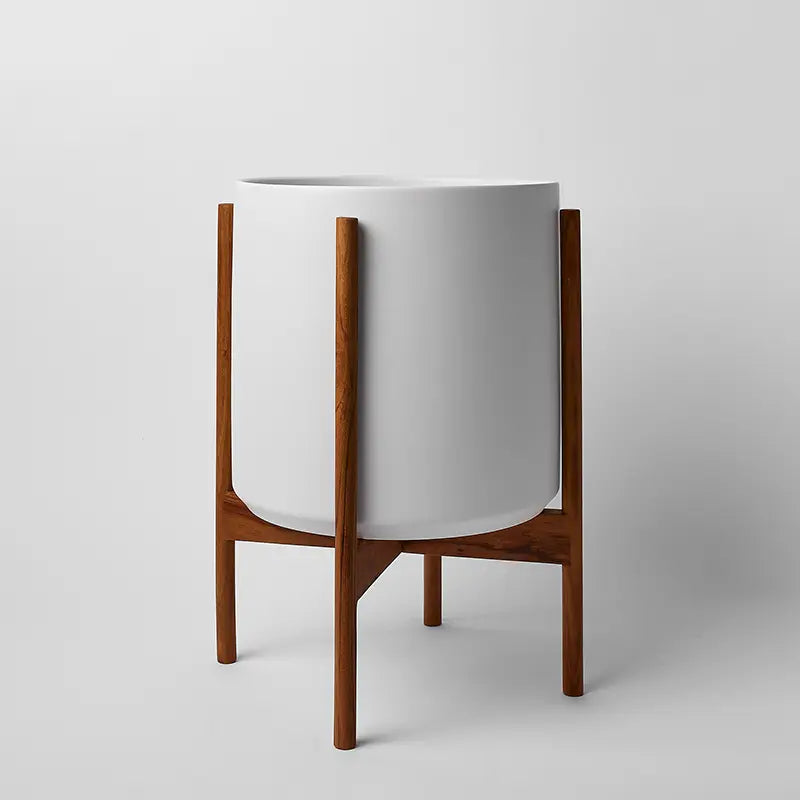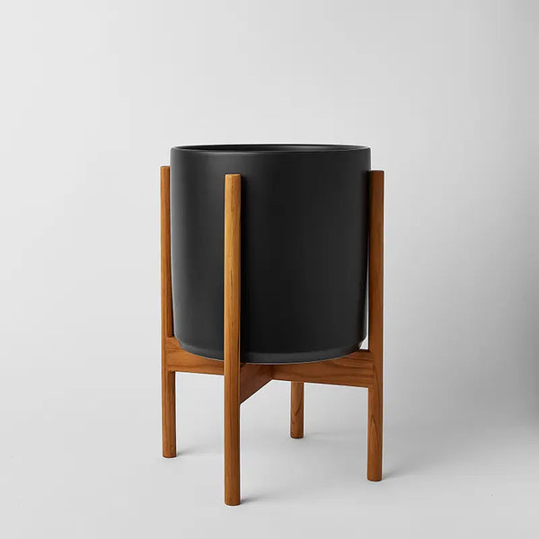 Refined, lightweight, and beautifully made, the Ceramic Cylinder Planter with Rounded Hardwood Stand is designed for thoughtful interiors. Crafted from high-fired stoneware and hand-glazed inside and out, the planter offers a clean silhouette and a watertight matte finish—perfect for styling leafy greens in living rooms, kitchens, or entryways.