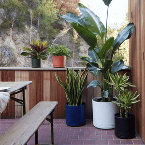 Instead of going for quantity, aim for quality. Focus on curating a few great plant and planter combinations using sleek versatile planters like The Four with Plinth or Round Two. This approach can improve the ambiance of smaller spaces without overcrowding. Opt for a larger statement plant in an empty corner and accessorize with a small plant ensemble elsewhere.